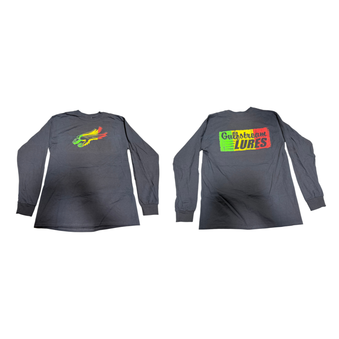 Long Sleeve Gulfstream Lures Cotton Tee in Rasta Black – Classic comfort meets style with soft, breathable cotton and the iconic Gulfstream logo.
