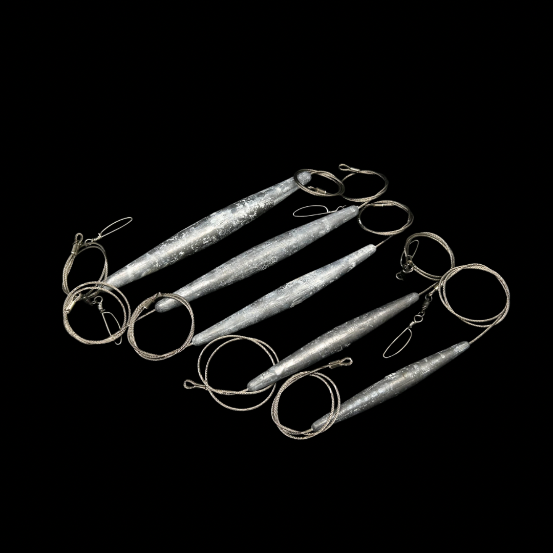 Our High Speed Trolling Leaders are rigged with 3ft of 450lb 7x7 stainless steel cable and come with the stainless steel Ball Bearing Snap Swivel on one side. Available in 5 sizes. 16oz, 24oz, 32oz, 48oz, and 64oz.
